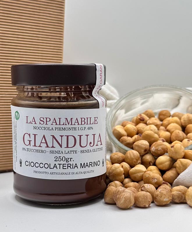 La crema spalmabile Gianduja è realizzata con ingredienti selezionati come la nocciola gentile Trilobata del Piemonte IGP al 60%.